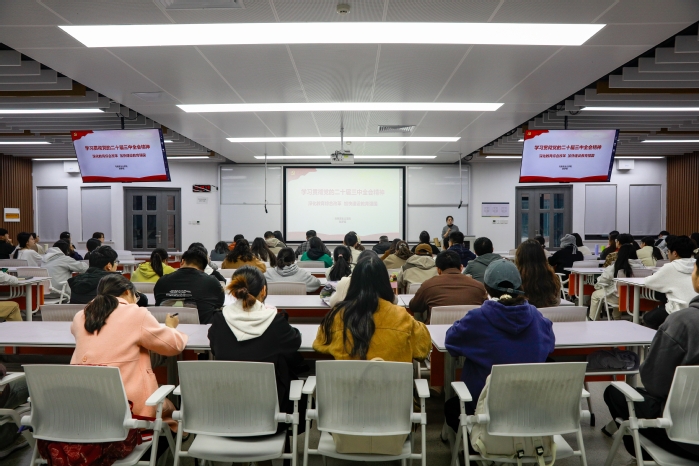 为深入学习贯彻党的二十届三中全会精神,推动会议精神在校园内落地生根,在师生中形成广泛共识,11月12日,仁智书院与崇德书院于弘学楼F102共同举办了学习贯彻党的二十届三中全会精神讲座。此次讲座特邀马克思主义学院教师赵梦瑶主讲,书院党总支书记、全体辅导员以及学生代表共同参加。