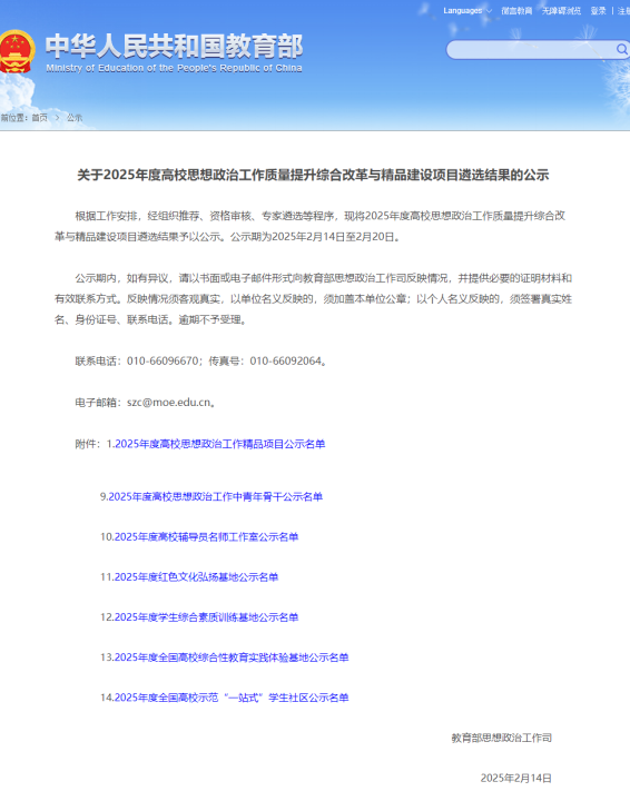 教育部公示链接:http://www.moe.gov.cn/jyb_xxgk/s5743/s5745/202502/t20250214_1179117.html
